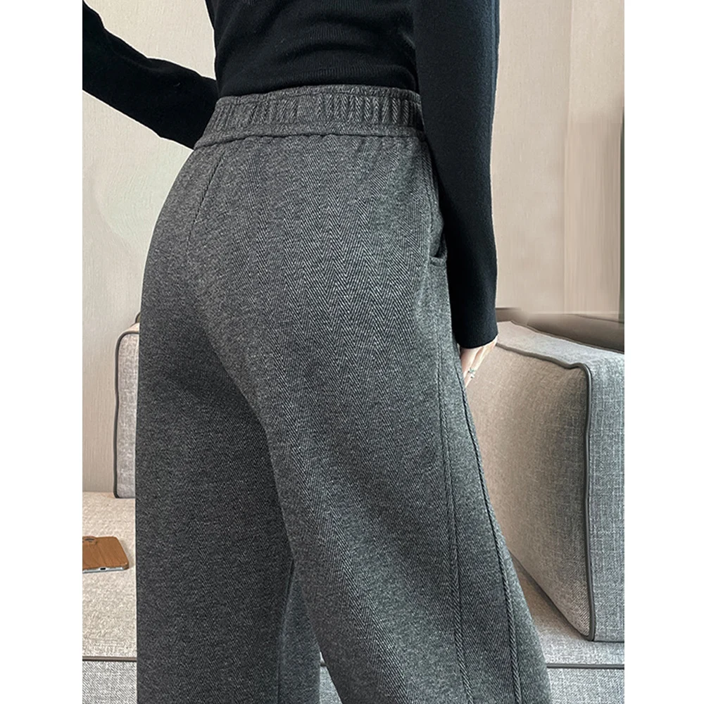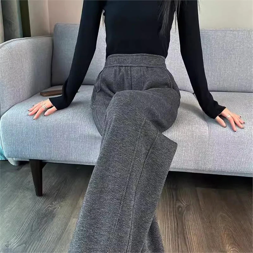 European apricot wide leg pants for women’s autumn new high-end fashion plus size straight leg split casual banana pants