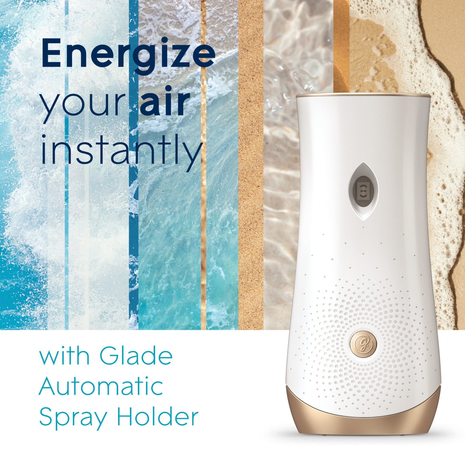 About this itemProduct detailsMake a refreshing splash with Glade Invigorating Aqua Waves Automatic Spray Refill. Enjoy waves of freshness with this scent diffuser with notes of sea salt, island flowers and ocean air. Glade air freshener fragrance is crafted by master perfumers. Switch things up with automatic air freshener dispenser in Invigorating Aqua Waves scent. Open the unit by squeezing the ribs on the side while pulling sides of holder apart. Insert Glade automatic spray refill and choose the time setting to release fragrance. This automatic air freshener spray gives a fresh burst every 9, 18 or 36 minutes. Surround yourself with room freshener fragrance infused with essential oils and make work days feel like beach days. Energize your air instantly with Glade Automatic Spray Air Freshener Enjoy a fresh burst every 9, 18 or 36 min for a timed fragrance release Make a refreshing splash with Glade automatic spray with notes of sea salt, island flowers and ocean air This Glade air freshener fragrance is crafted by master perfumers and infused with Essential Oils™ Boost the fragrance of any room with battery operated air freshener error:We aim to show you accurate product information. Manufacturers, suppliers and others provide what you see here, and we have not verified it.  See our disclaimer